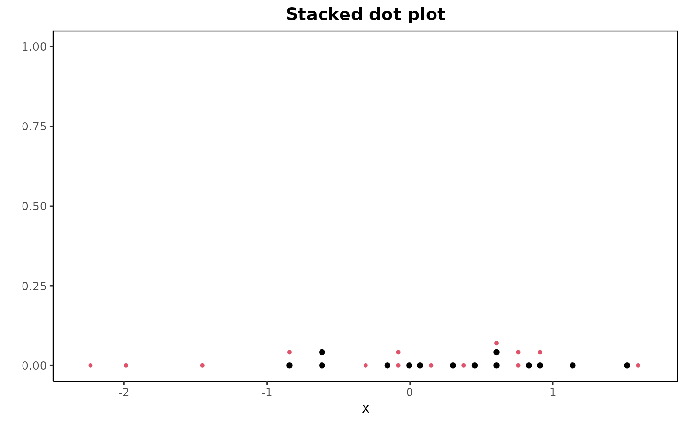 dotPlot(x, group = g, stacked = TRUE, pch = c(19, 20), main = "Stacked dot plot")