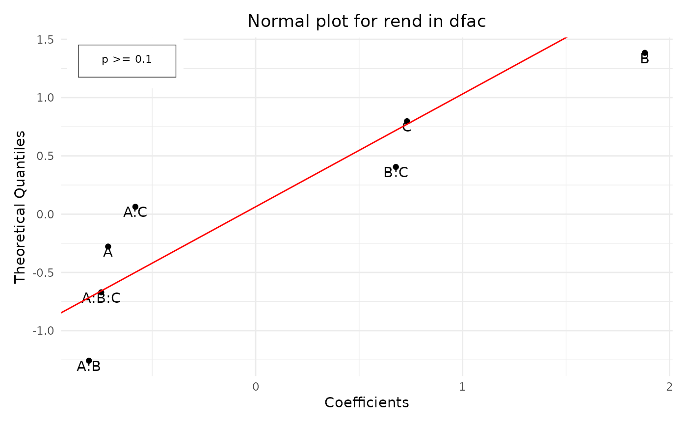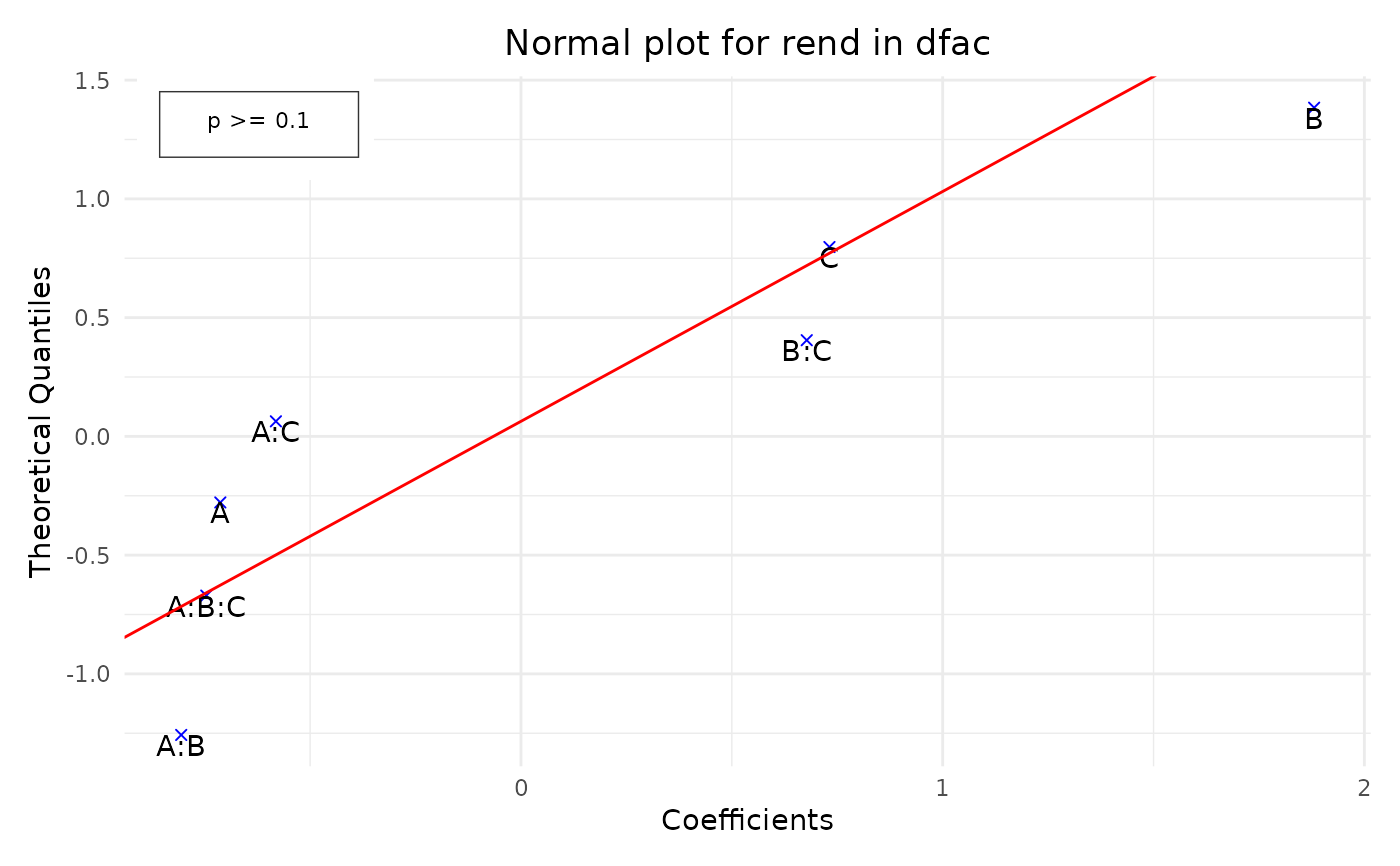 Creates a normal probability plot for the effects in a facDesign.c object.