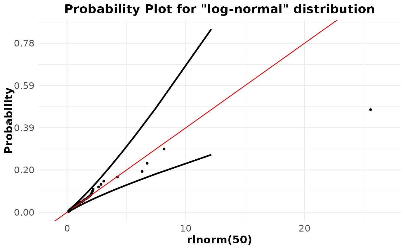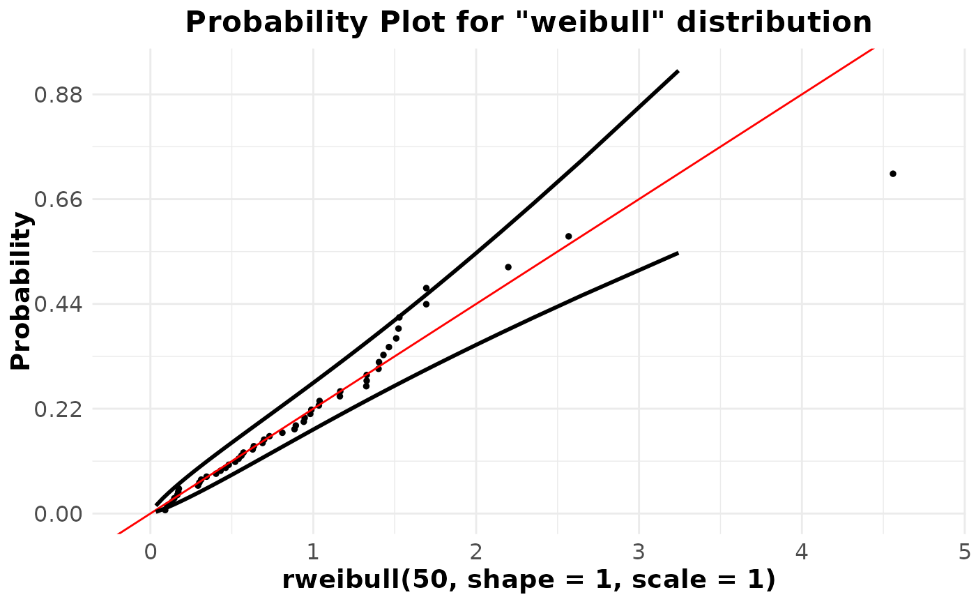ppPlot(rweibull(50, shape = 1, scale = 1), "weibull")