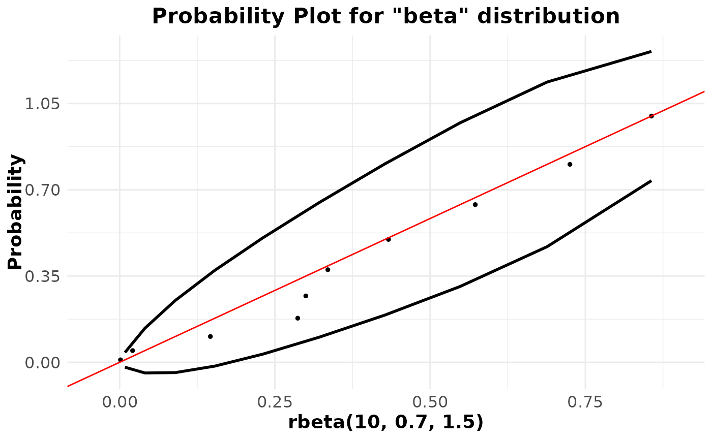 ppPlot(rbeta(10, 0.7, 1.5),"beta")