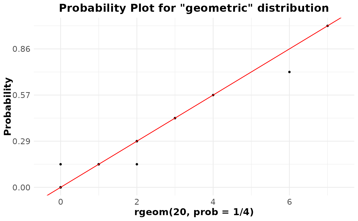 ppPlot(rgeom(20, prob = 1/4), "geometric")