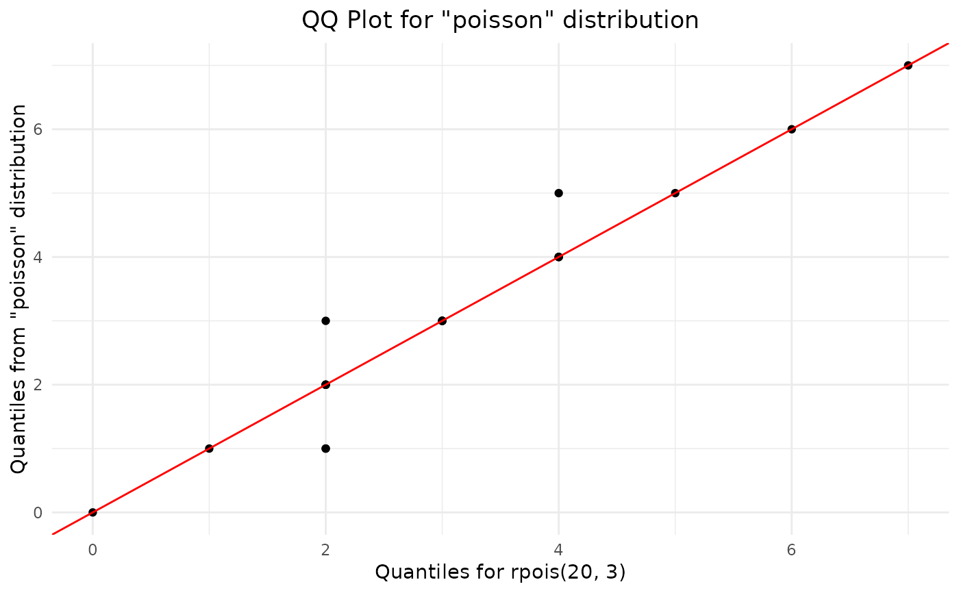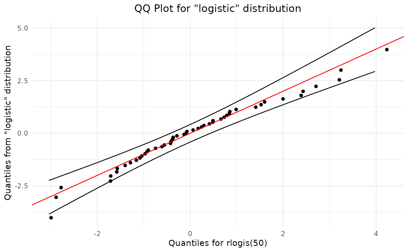 x. The functionqqPlotsupports the following character strings fory:`beta``cauchy``chi-squared``exponential``f``gamma``geometric``log-normal``lognormal``logistic``negative binomial``normal``Poisson``weibull`