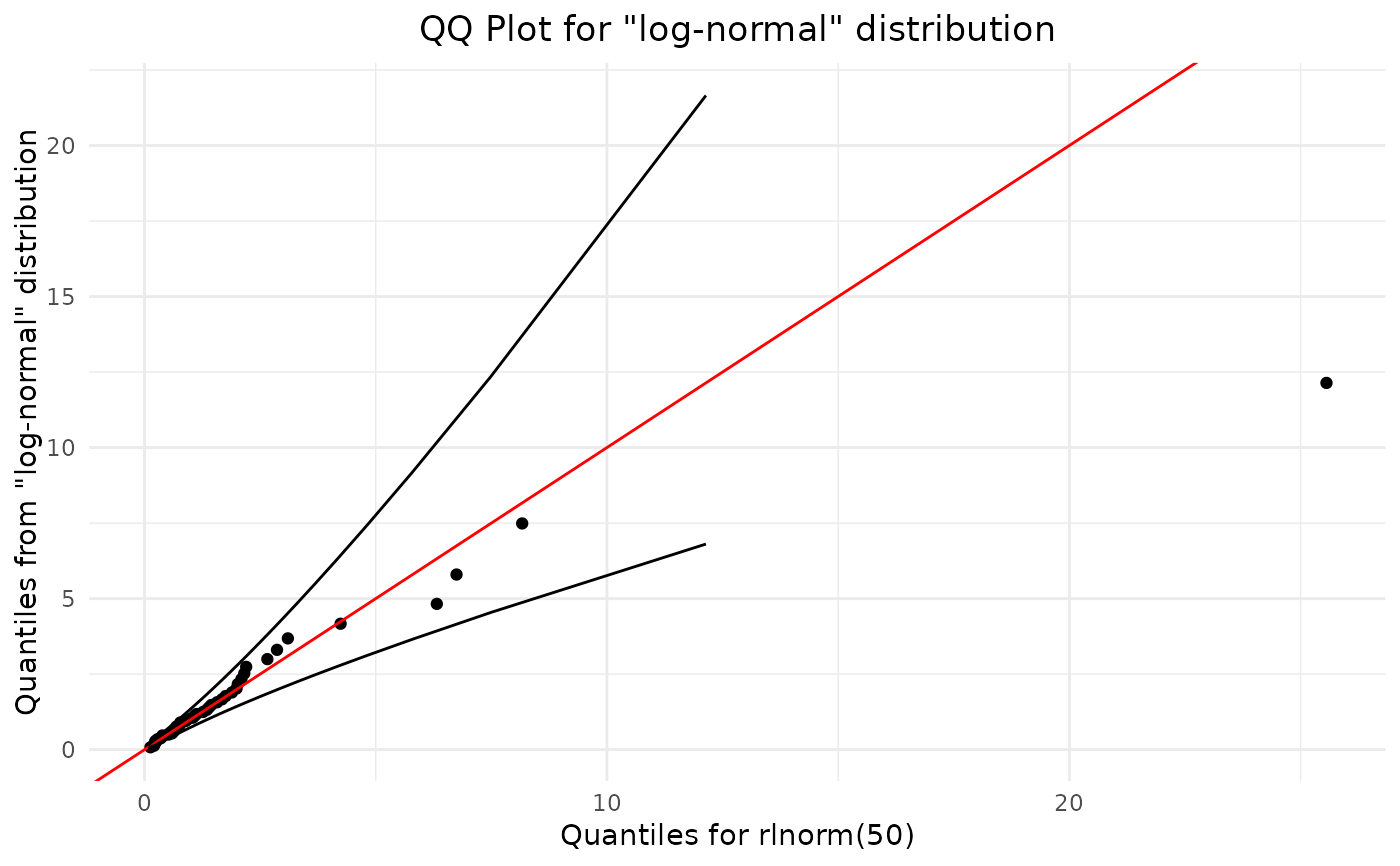 qqPlot.RdFunction qqPlot creates a QQ plot of the values in x including a line which passes through the first and third quartiles.