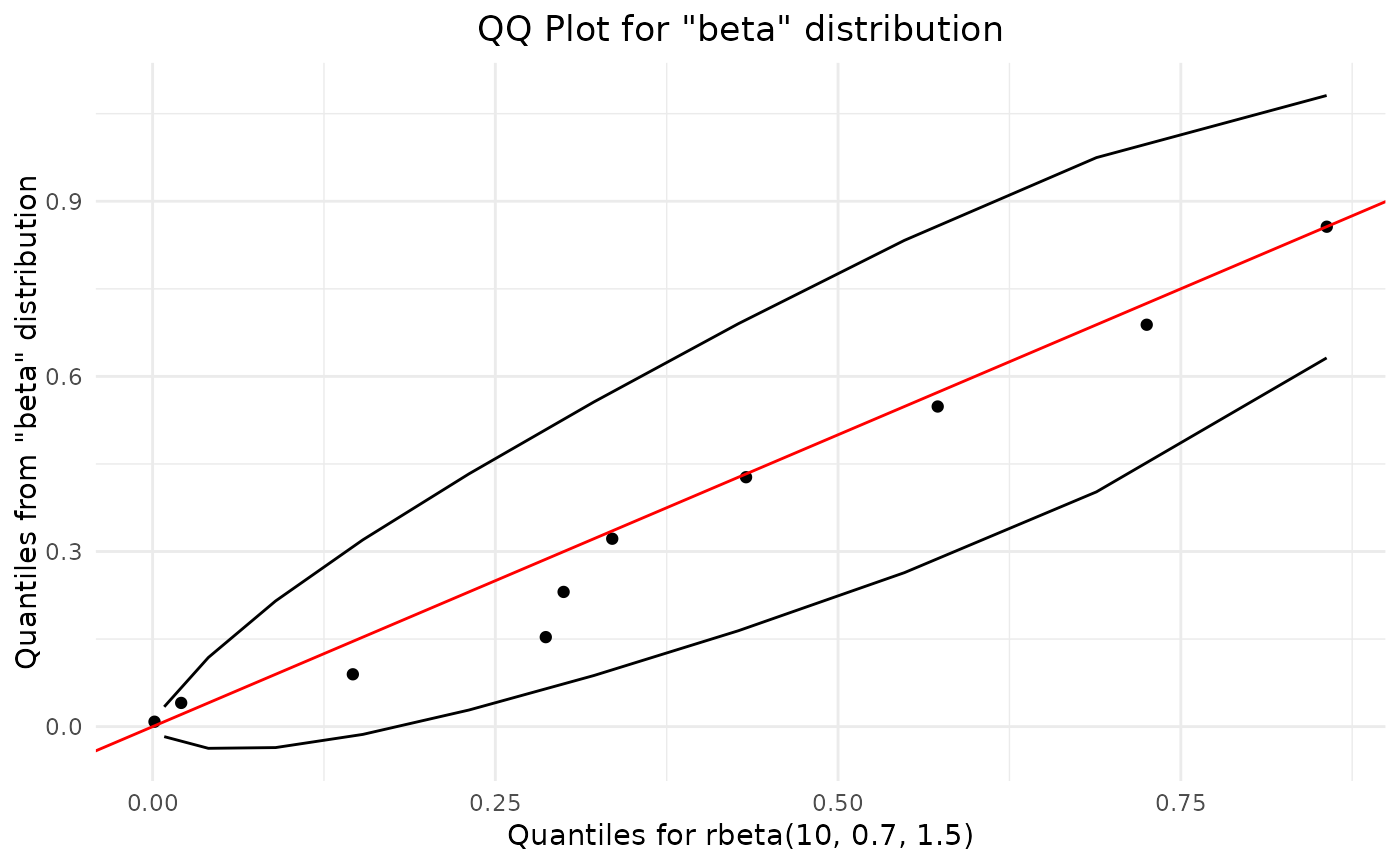 qqPlot(rbeta(10, 0.7, 1.5),"beta")