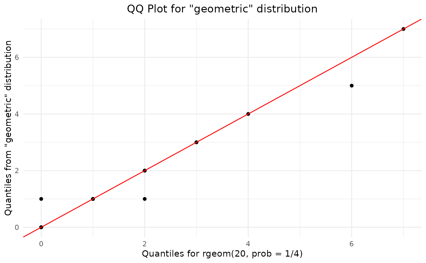 qqPlot(rgeom(20, prob = 1/4), "geometric")